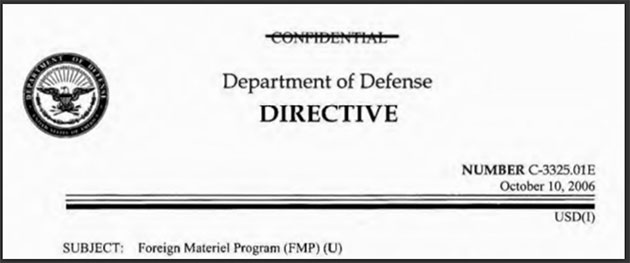 - „Foreign Materiel Exploitation (FME). Dies umfasst Aktivitäten des „Foreign Material Program“, die die Analyse, Prüfung, Bewertung und Dokumentation der wissenschaftlichen und technischen Geheimdienste (wissenschaftliche & technologissche Merkmale eines fremden Materials) beinhalten.“